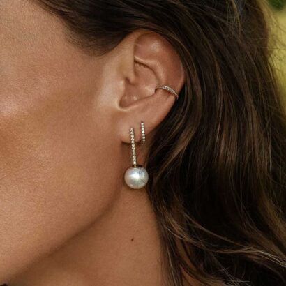 Though the elements are enduring, the effect is pure modernity. An astonishing 12mm pearl beams from beneath a row of 12 white diamonds in a mesmerising contrast. Against the timelessness of the materials, the pendant’s graphic form firmly establishes this as a future-proof classic.